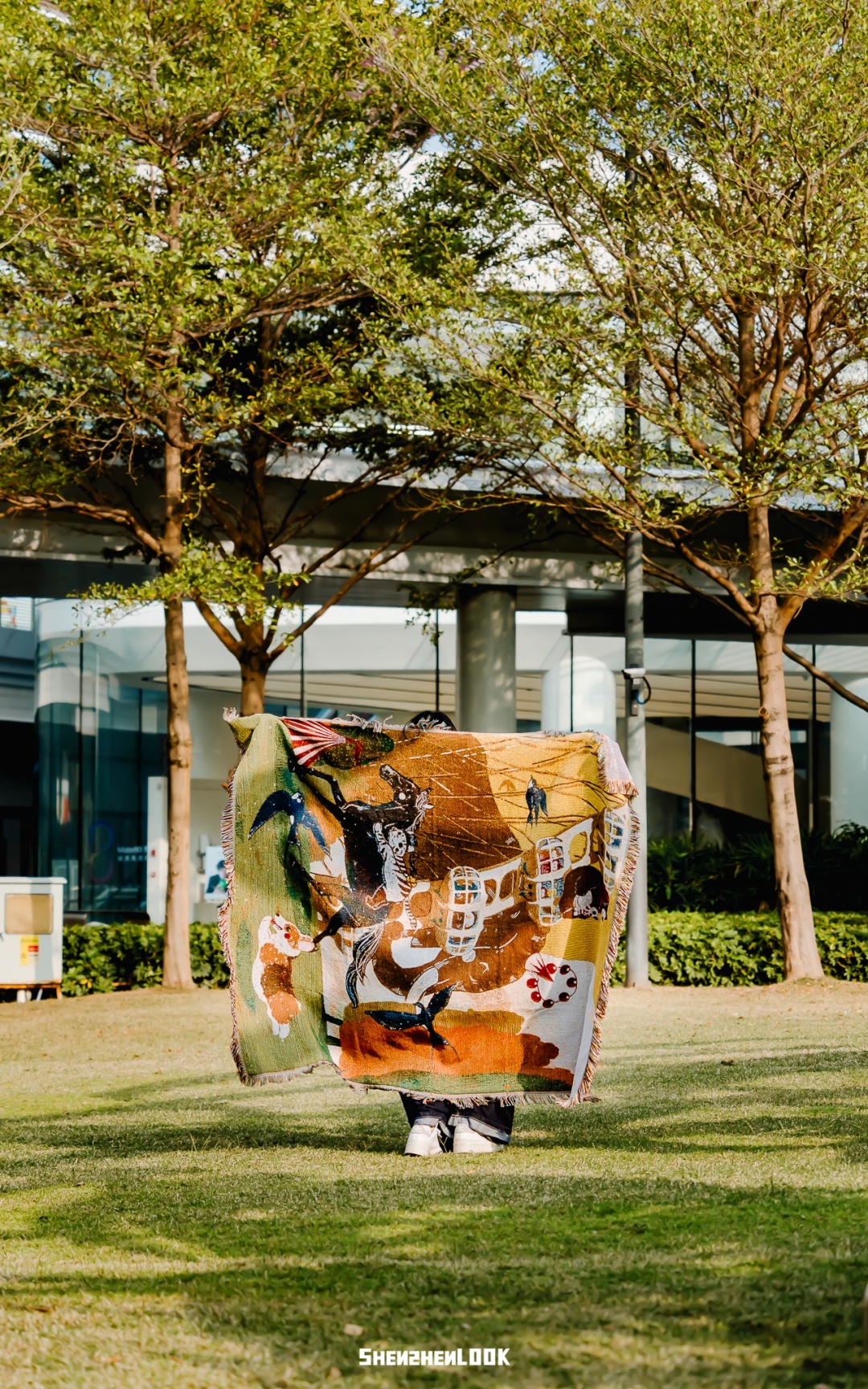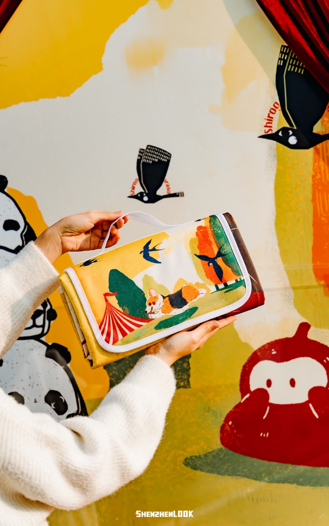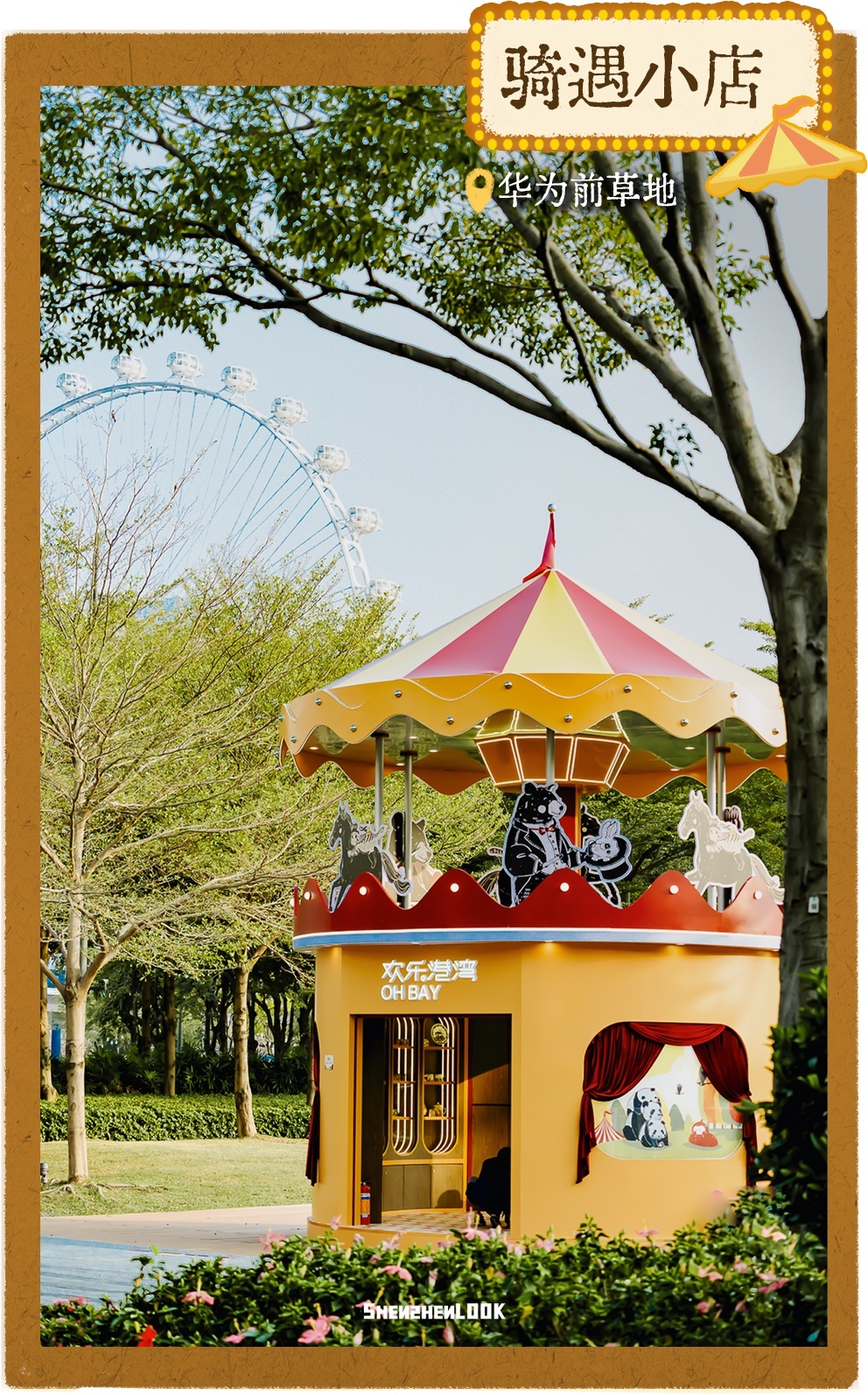 坐落在华为前草地的骑遇小店,是探险路上宝藏库。小店如同从童话书中直接搬出来的小屋,橱窗里摆满了冰箱贴、野餐垫、毛毯、主题画等等《骑遇未境》的系列周边。