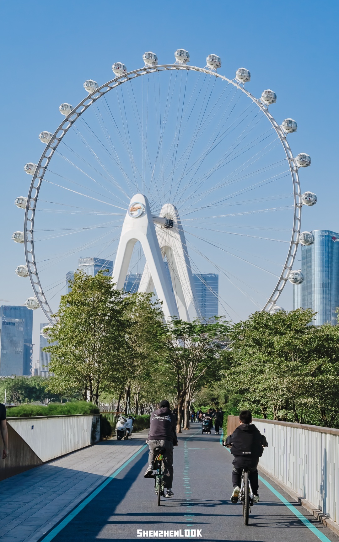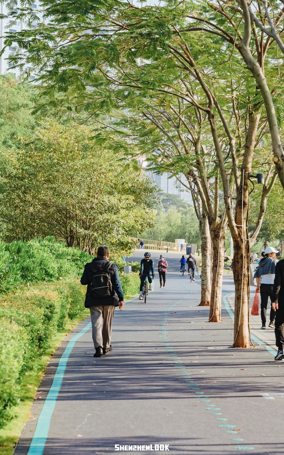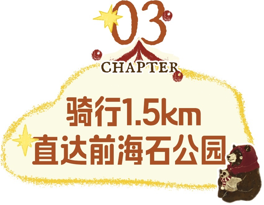 从摩天轮出发,沿着山海连城绿道骑行1.5公里左右即可抵达公园,一路与海伴行。打卡完欢乐港湾,不妨来这里开启冬日游园。