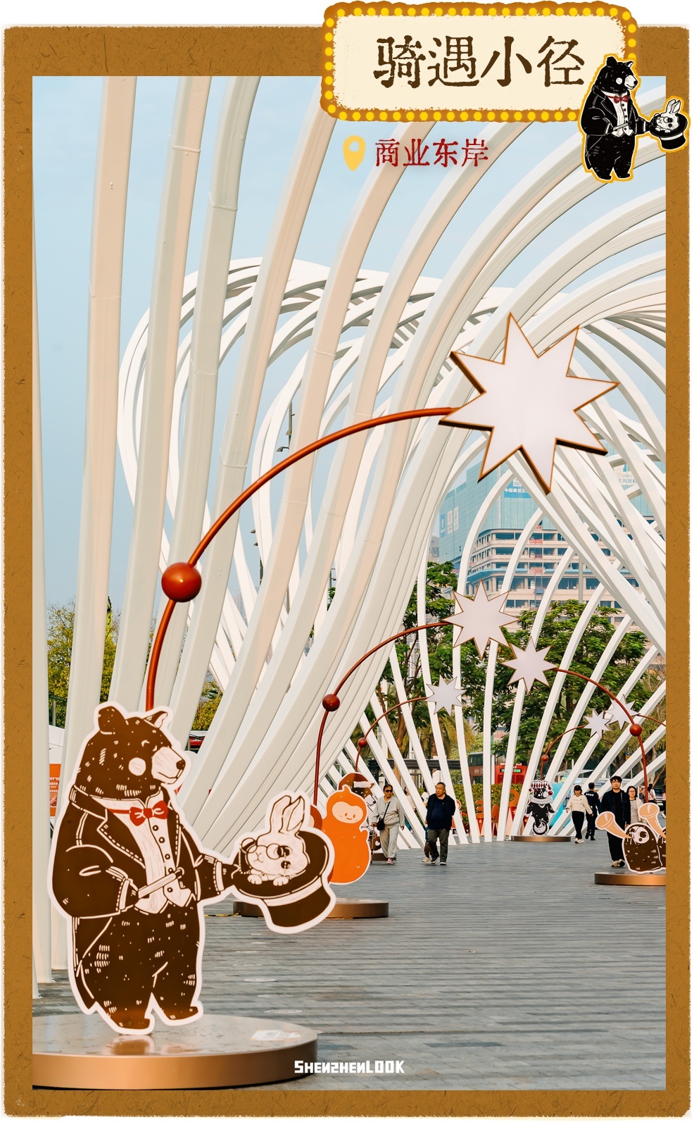 另外,骑遇未境剧场也开进前海石公园——坚果在公园的海边打造了一个许愿树和礼盒,在这里许个愿,让星光听见你的新年心声,也和艺术撞个满怀~