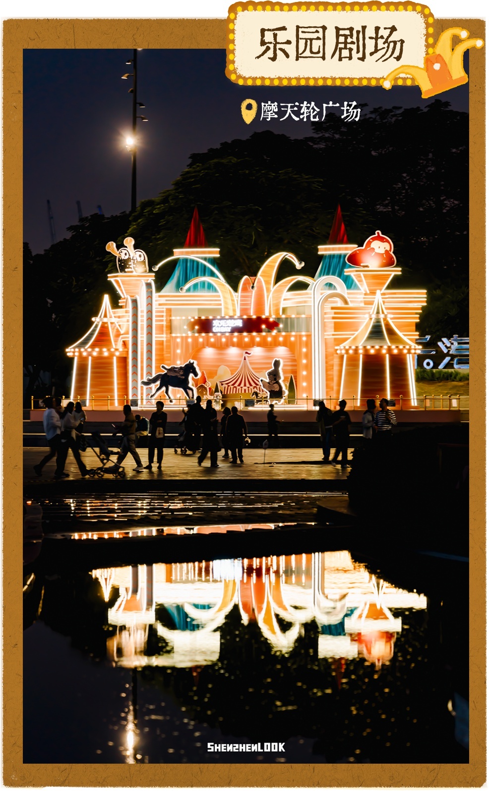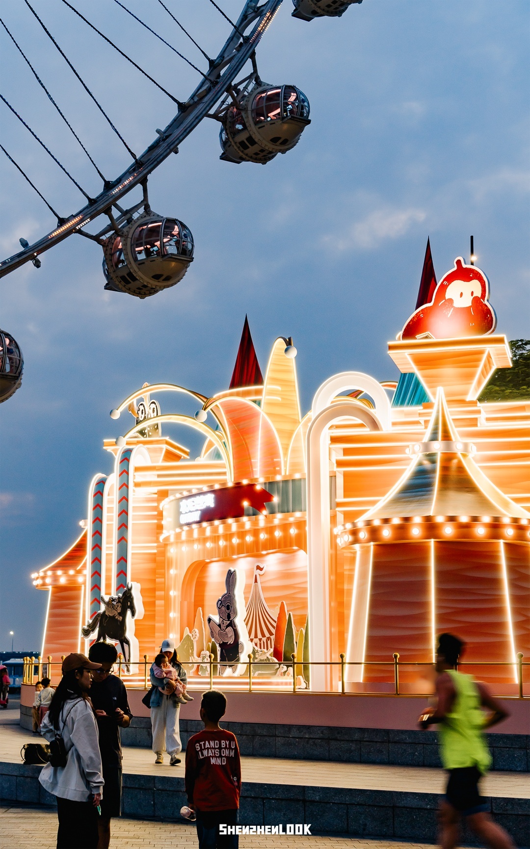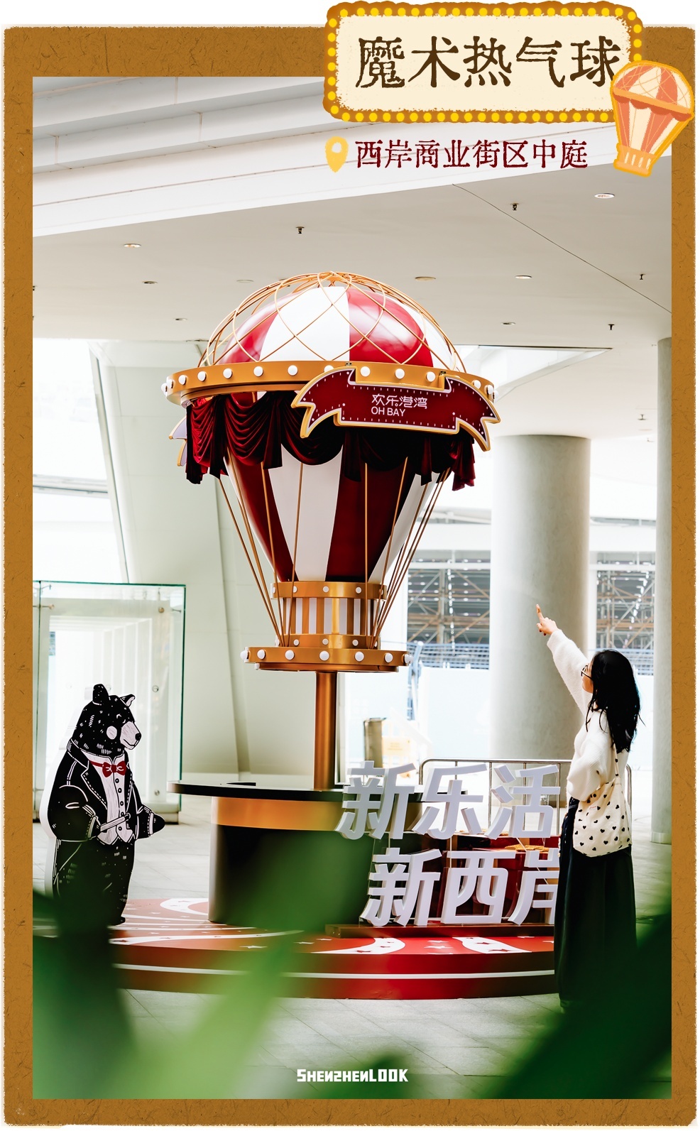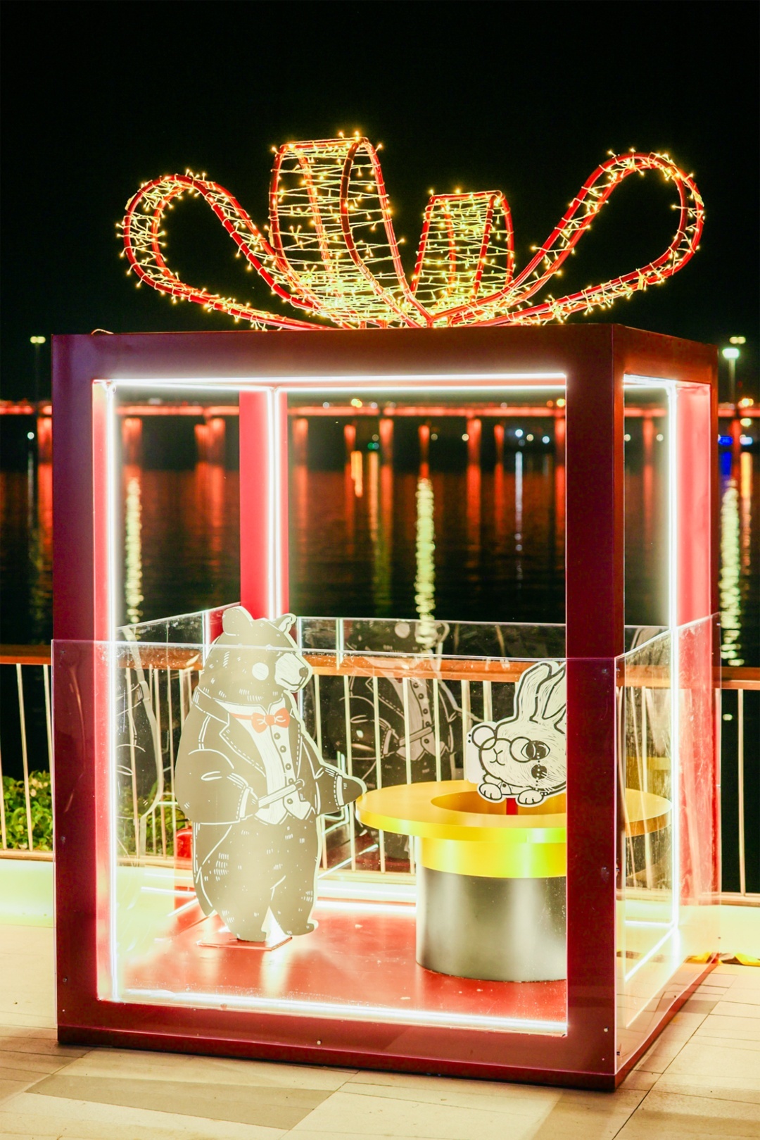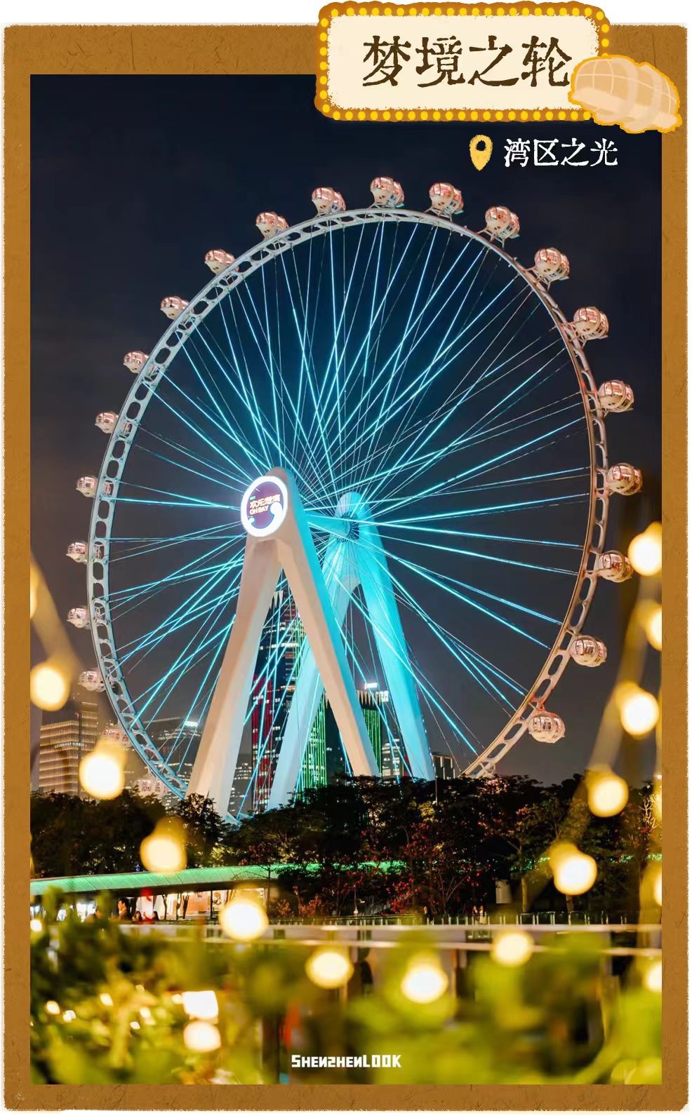 对啦,这座高达128米的“湾区之光”摩天轮,在新年期间化身为“梦境之轮”。这里是童话的起点,也是制高点,在缓慢的旋转中,整个童话港湾都尽收眼底。在摩天轮二楼平台还有专门合影留念的新年装置~