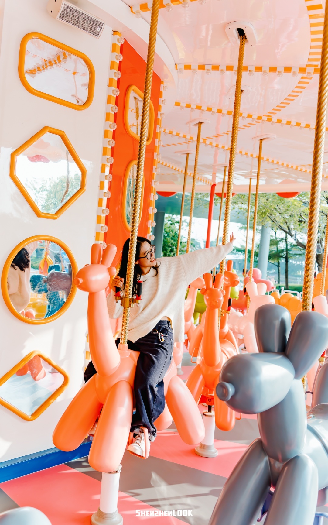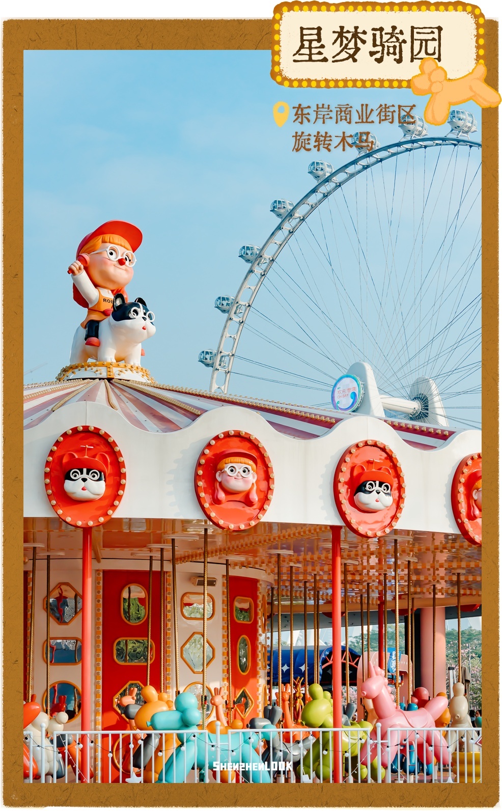 沿着路线抵达东岸,这座“星梦骑园”旋转木马也带着魔法开园。不论大小朋友,在这里都可以随机入座一只缤纷小马,随着叮咚梦幻的音乐转起来,像是整个童话剧场的欢乐启动引擎。