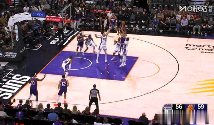 比赛开始后,国王状态不错,半节过后,国王16:15领先。随后,太阳队逐渐找到感觉,不断迫近比分并且反超,首节结束,太阳32:29反超。第二节,太阳队持续扩大领先优势,半场结束,太阳61:56领先。第三节,太阳领先越来越多,半节过后,太阳77:66领先。三节结束,太阳队97:83领先。